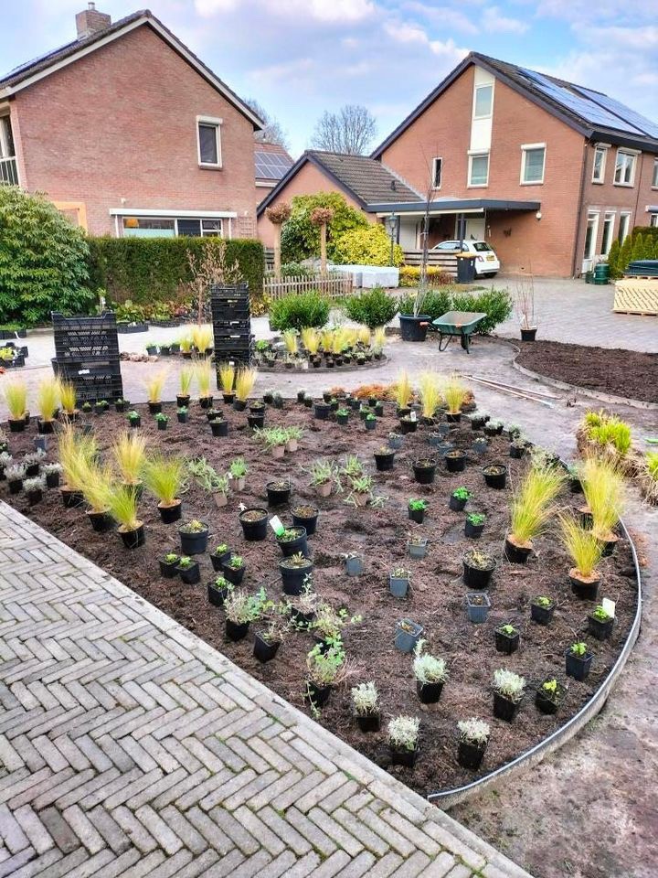 De bewoners zijn van een volledig kale voortuin met alleen gras en slechts 1 border, naar een natuurlijke voortuin gegaan met verschillende borders die gevuld zijn met de prachtigste bloemen. De pergola zal vol bloeiende klimmers komen en als eye-catcher komt er een prachtige roodbladige Cercis. Het meest knappe is dat de bewoners al het werk zelf hebben gedaan. Zo zie je maar weer, met een leuk ontwerp en veel enthousiasme kan je een heerlijke plek voor jezelf creëren.